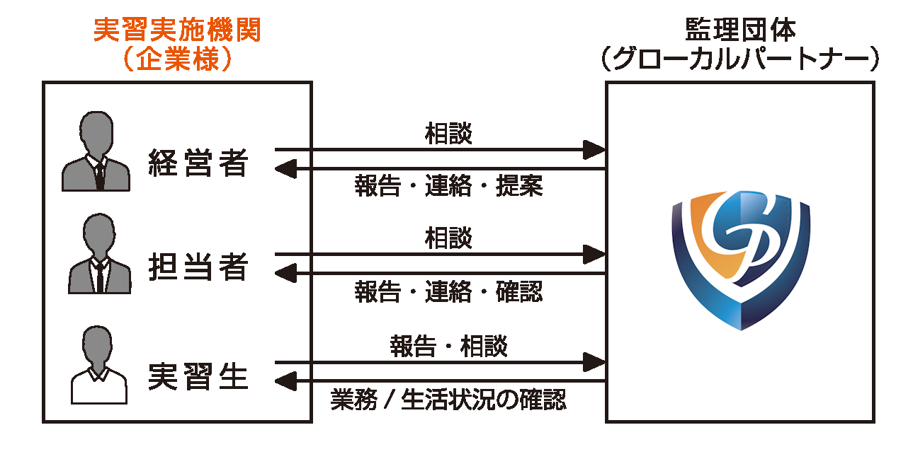 企業様と実習生の仲介役として、問題や相談事項の発生時にはスピーディに対応しています。